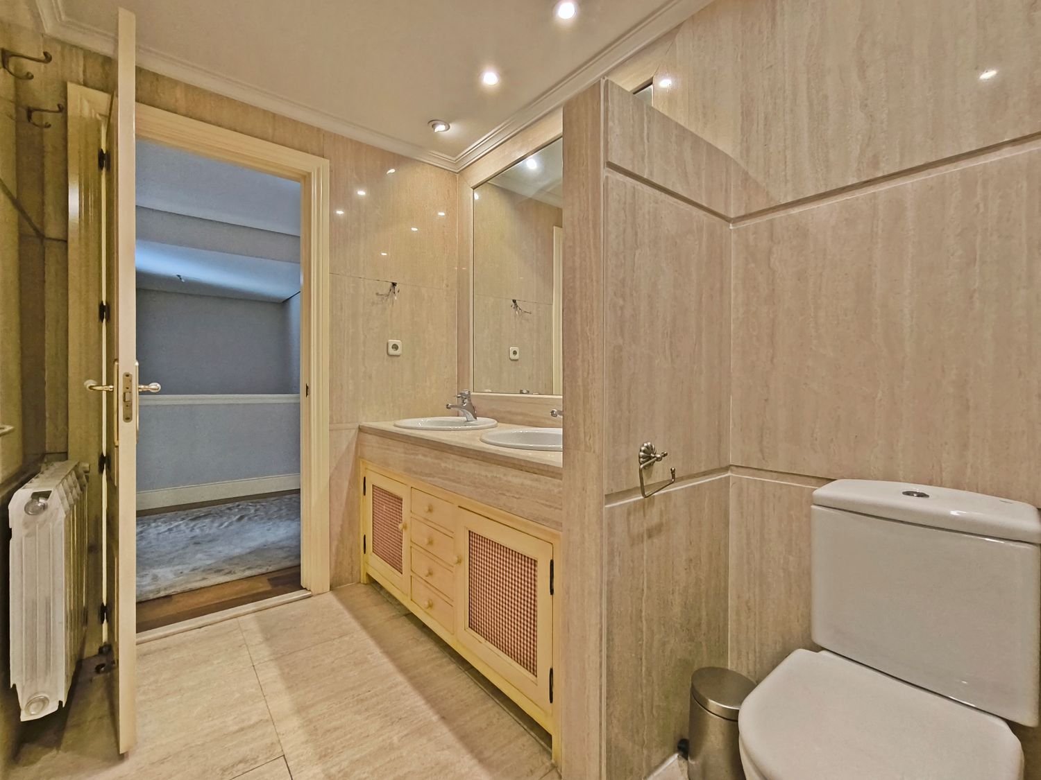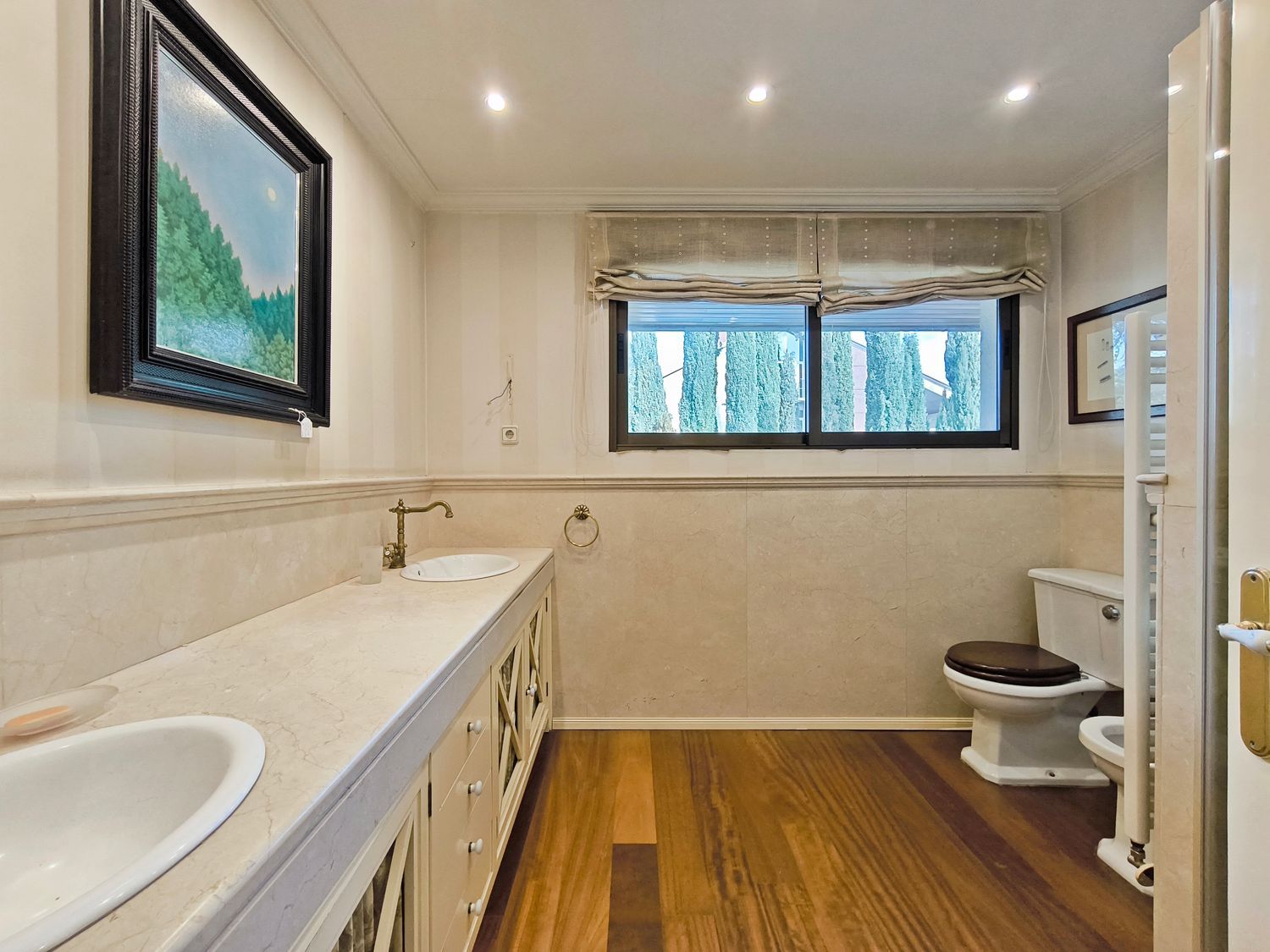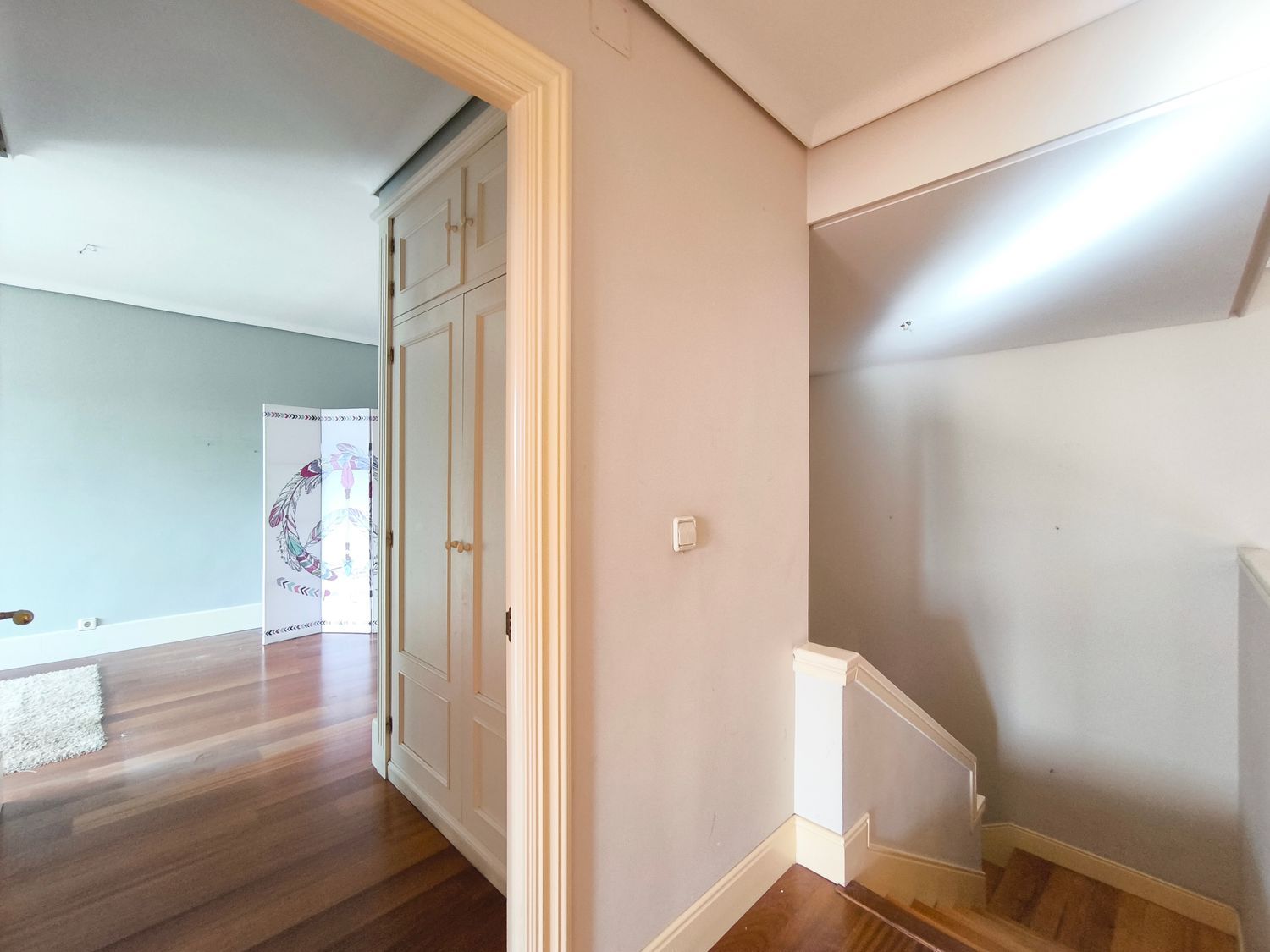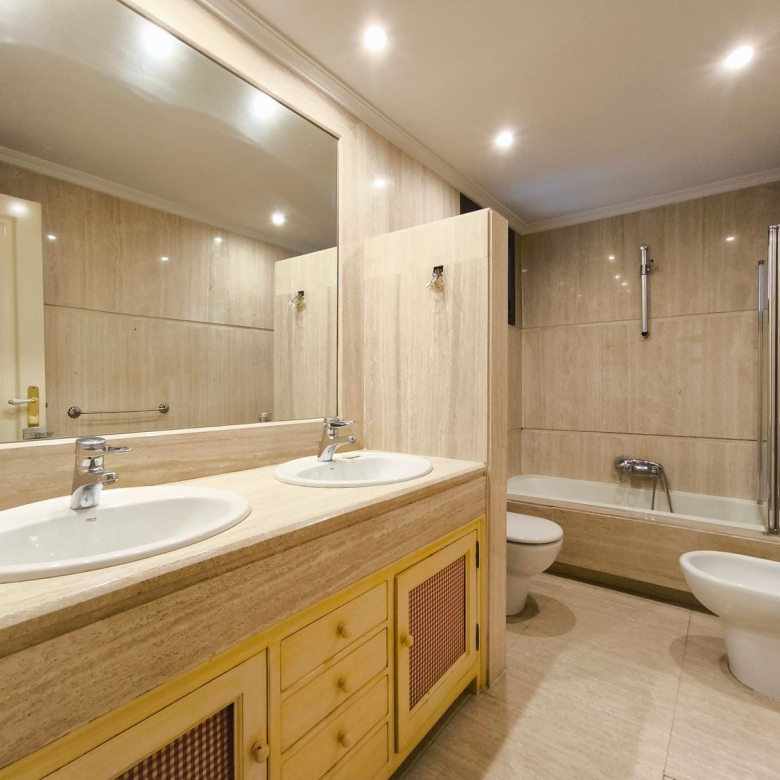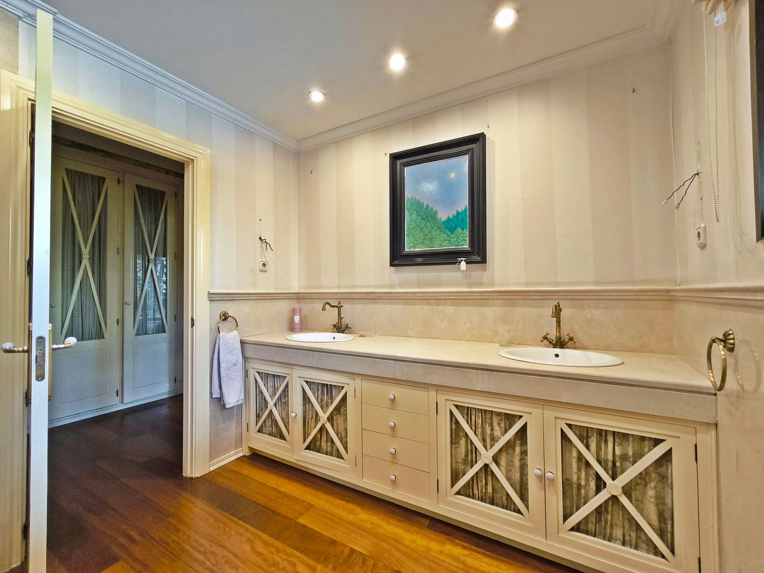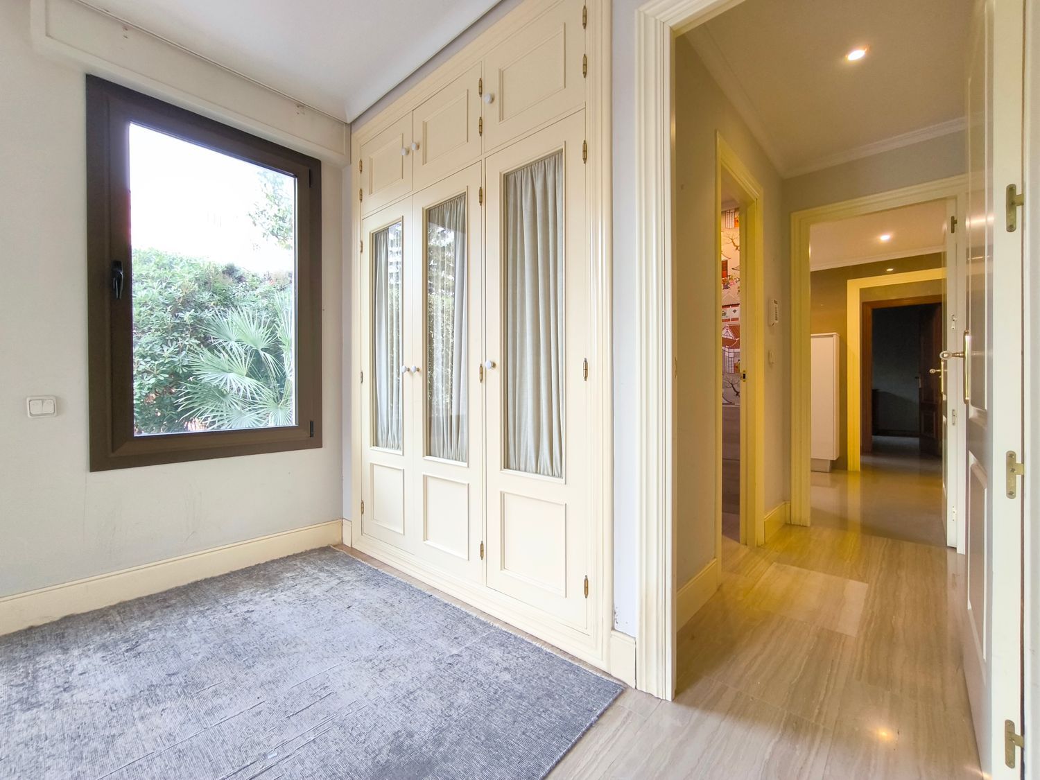 En la planta superior donde se encuentran las habitaciones, comienza con un gran distribuidor que reparte todas las estancias con espacio. La suite principal incluye un amplio vestidor y un baño de lujo con acabados en mármol. A continuación tenemos otra habitación en suite con baño. Las habitaciones secundarias son igualmente espaciosas y están diseñadas con el mismo nivel de detalle y calidad, compartiendo un baño con bañera de hidromasaje.