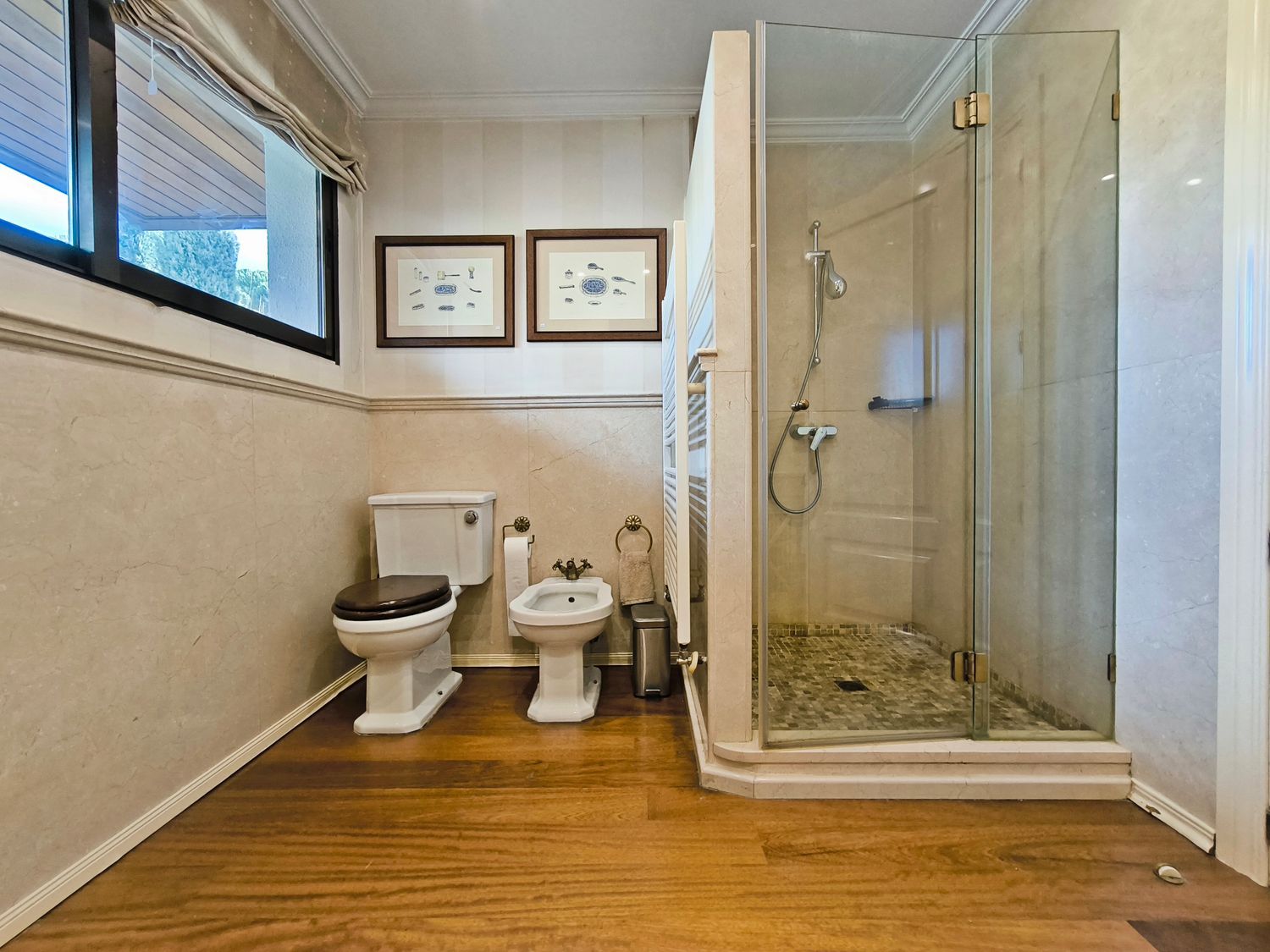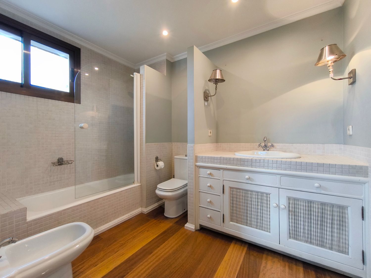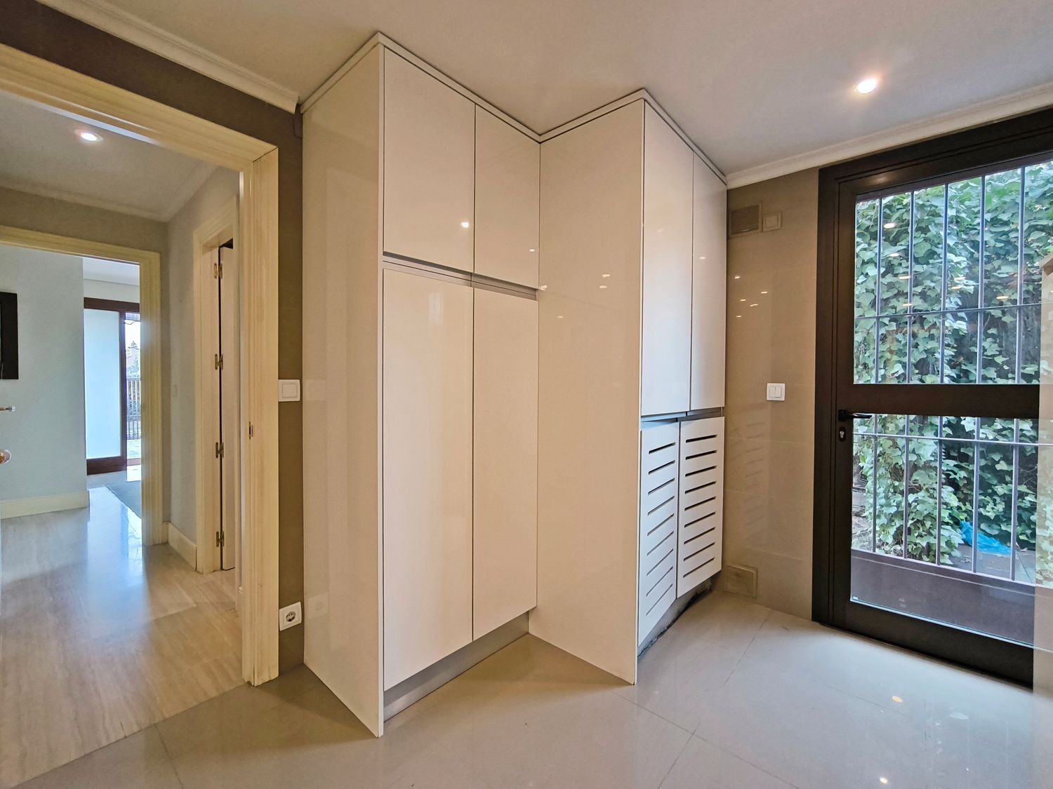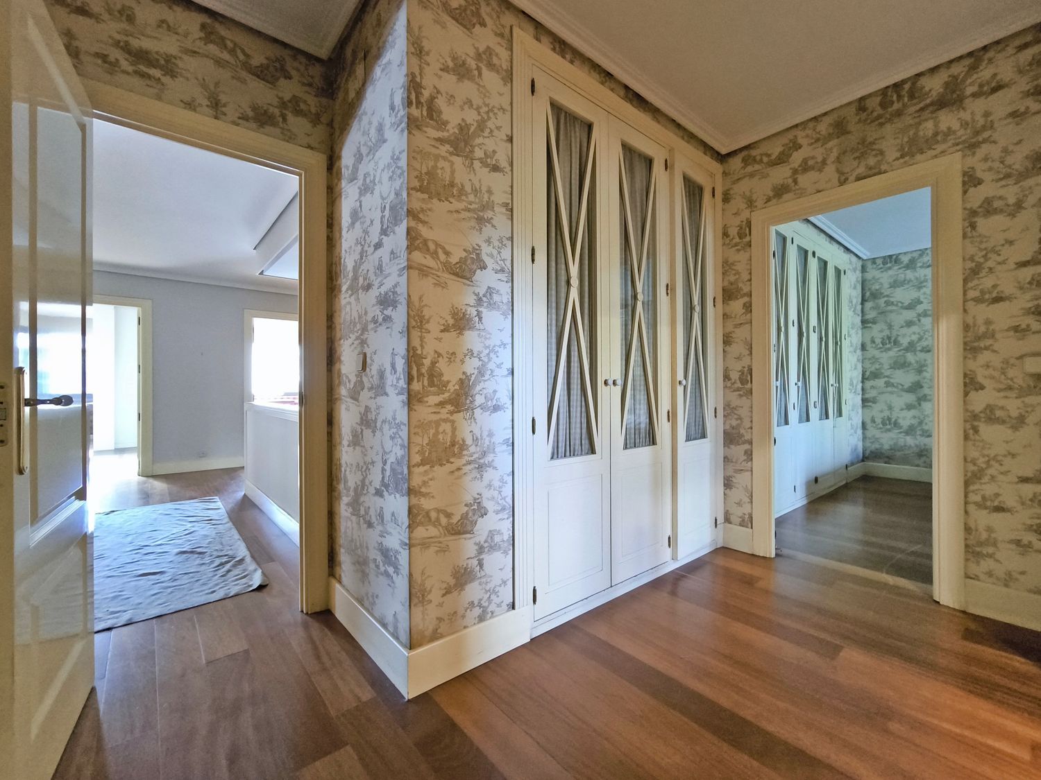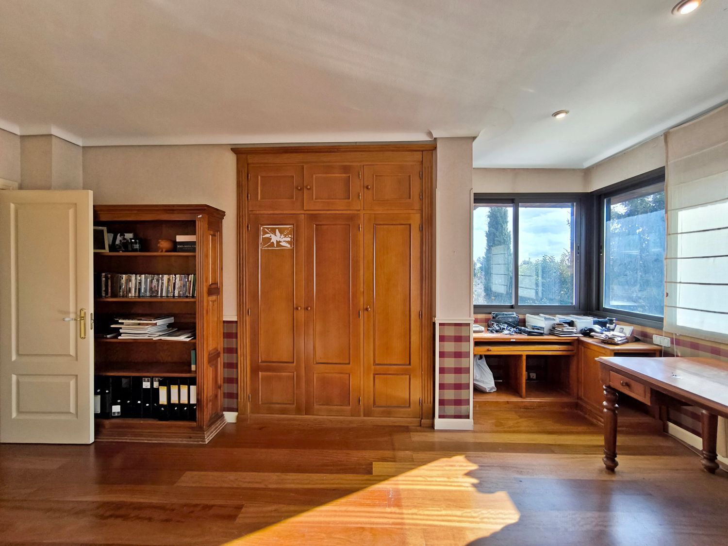 En la planta superior donde se encuentran las habitaciones, comienza con un gran distribuidor que reparte todas las estancias con espacio. La suite principal incluye un amplio vestidor y un baño de lujo con acabados en mármol. A continuación tenemos otra habitación en suite con baño. Las habitaciones secundarias son igualmente espaciosas y están diseñadas con el mismo nivel de detalle y calidad, compartiendo un baño con bañera de hidromasaje.