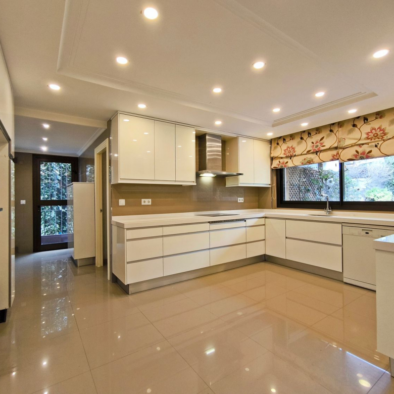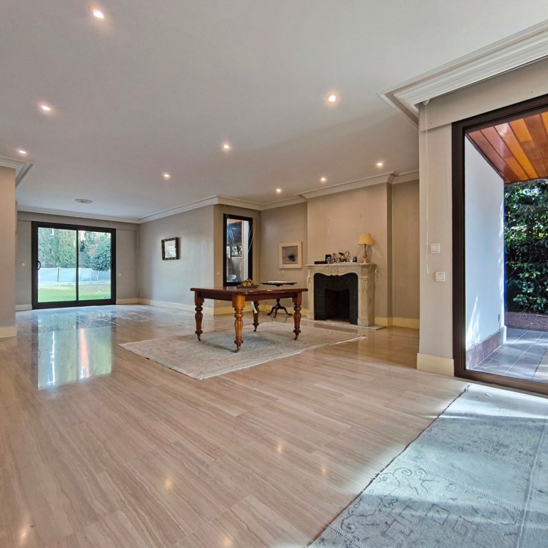 En la planta principal, un magnífico hall ofrece una distribución abierta que conecta tanto las áreas privadas como las comunes de la casa. El amplio y acogedor salón con chimenea está diseñado para ser un espacio multifuncional. La cocina es uno de los puntos más destacados de la casa, la cocina está equipada con muebles altos y bajos. El comedor, contiguo a la cocina, cuenta con grandes ventanales que permiten una abundante entrada de luz natural y ofrece acceso directo al jardín. También cuenta con zona de servicio junto a la cocina con entrada independiente desde el jardin.