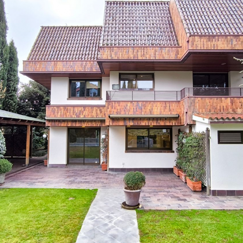 Magnifica vivienda en parcela de 1.020 m², en una de las zonas más prestigiosas de Majadahonda. Se destaca por un diseño, que prioriza grandes ventanales y el uso de materiales de alta calidad en suelos, ventanales y puertas de madera maciza con A/A en toda la casa. La fachada moderna y elegante de la casa se integra perfectamente con el entorno natural, logrando un equilibrio ideal entre naturaleza y solemnidad con una vegetación muy consolidada.