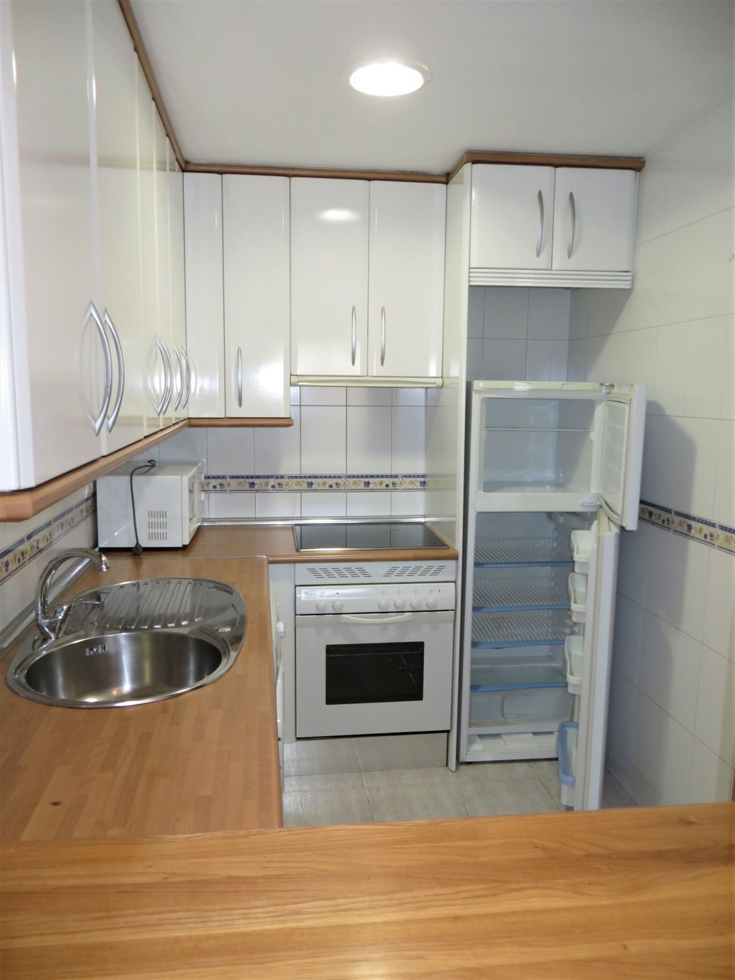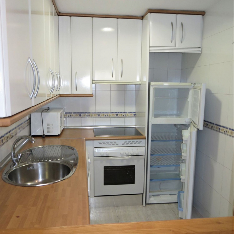 Apartamento de 1 dormitorio en plena Gran Vía peatonal de Majadahonda, con amplias dimensiones. La casa se divide en salón amplio con grandes ventanales y salida a la terraza compartida con la habitación, cocina semi independiente con pasa platos o barra para comer, se entrega con nevera y lavadora, dormitorio exterior con salida a la terraza y armario empotrado y 1 baño completo en mármol.